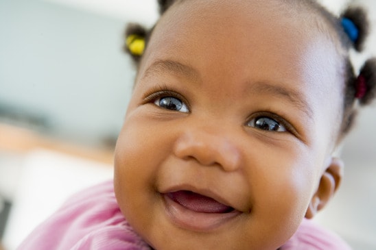 Baby indoors smiling